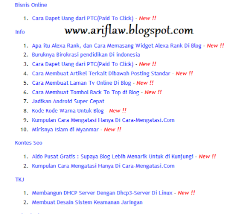 Salam sejahtera buat rekan-rekan Ariflaw Blog, Kali ini saya akan memberikan sedikit Tips buat kalian gimana sihh "Cara Membuat Daftar Isi Blog Yang Bagus" Yang kalo visitor liat enak gitu, yang simpel tapi elegan dan ringan. Ohh kayaknya pass banget pake cara ini.... udah banyak yang make dengan cara ini. Taukan Fungsi dari daftar isi ... kalo nga tau oke dehh saya sedikit singgung. Daftar